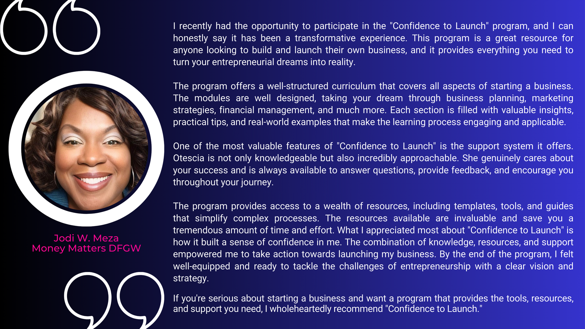 It's time to silence the doubts, quiet the inner critic, and step boldly into the life you were meant to live. Join Confidence to Launch and embark on a journey of self-discovery, empowerment, and success. Your dreams are waiting – are you ready to claim them?